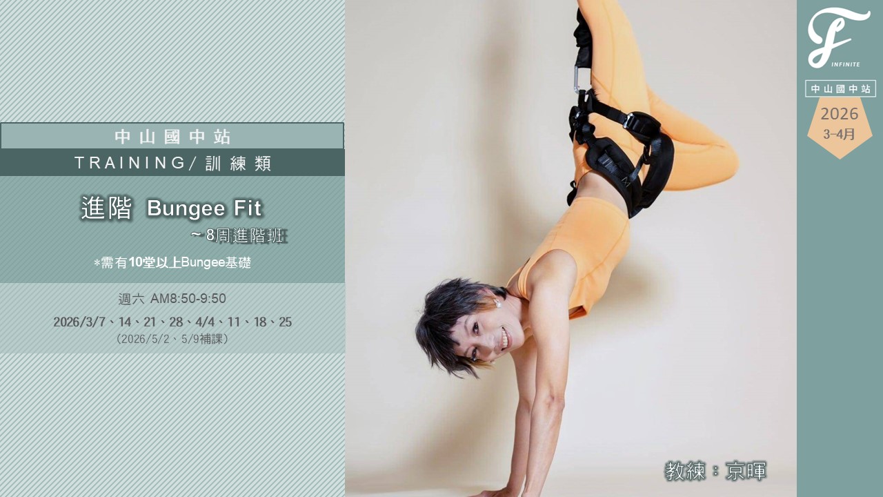 - 此期班為進階Bungee課程,須上過基礎10堂課以上才可報名。